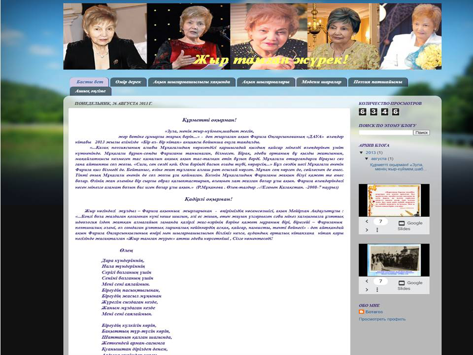28 тамыз күні Белсенді ұзақ өмір сүру орталығында Байғанин аудандық ардагерлер пленумы өтті.Шара аясында Аудандық орталық кітапхана «Ерлік пен еңбек – ел мұрасы» атты жылжымалы кітап көрмесін ұйымдастырды.Көрмеге өңірімізден шыққан ақын-жазушылар мен ғалымдардың еңбектері қойылып, қатысушылар назарына ұсынылды. Жаңа кітаптар![]() Әлихан Жақсылық |