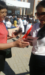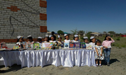 1-маусым – балаларды қорғау күніне орай «Кітапты ашып, әлемді таны» тақырыбында мүмкіндігі шектеулі оқырмандарға арнап жазғы алаңдағы кітап көрмесі. 2017. |