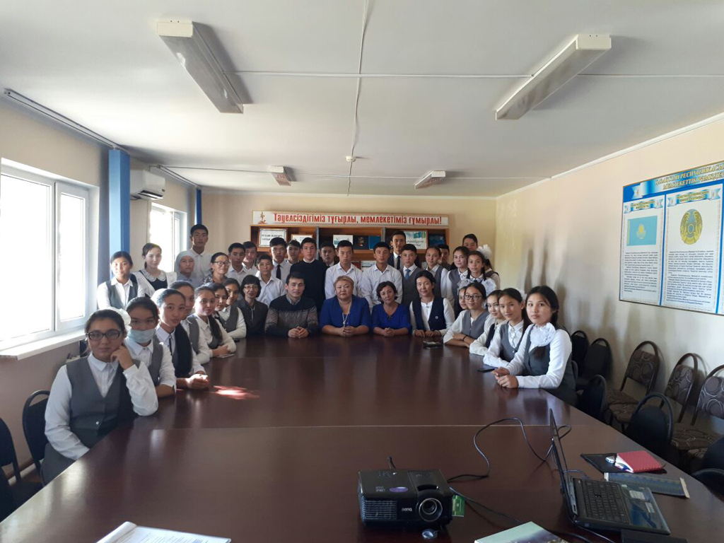 Байғанин аудандық техникалық колледжбен бірлесе отырып, «Ауылдан шыққан ғалымдар» тақырыбында танымдық сағат ұйымдастырды. 2016. |
