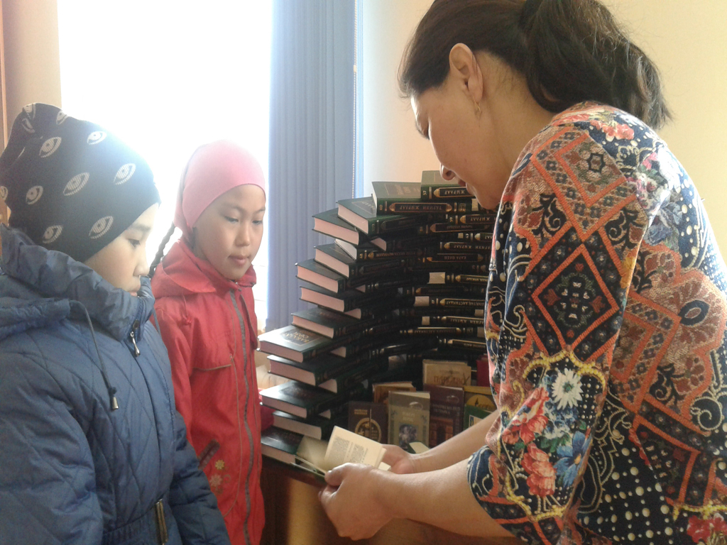Дүниежүзілік кітап және авторлық құқық күніне орай кітапхана келушілеріне кітап көрмесі. 2017. |