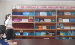 Тәуелсіздіктің 25 жылдығына «Тәуелсіздігіміз тұғырлы, мемлекетіміз ғұмырлы» кітап көрмесінің ашылуы 2016. |