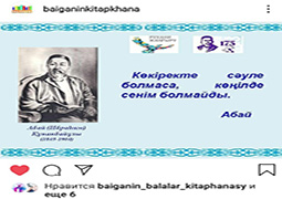 «Әсемпаз болма әрнеге» қазақтың ұлы ақыны А.Құнанбайұлыныңы 175 жылдығына орай жас талапкер ақындар мүшәйрасы жарияланды. https://www.instagram.com/baiganinkitapkhana/