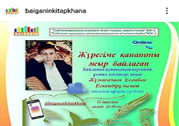 Қазақ халқының айтулы ақыны, жыр дүлділі белгілі «Бес жүйріктің бірі» Ақтан Керейұлының туғанына 170 жыл толуына орай «Ақ дария Ақтан ақын» атты Ақтантанушы ғалым, айтыскер ақын, «мәдениеттану» мамандығынының докторанты, Қазақстан Журналистер Одағының және Халықаралық айтыс ақындары мен жыршы-термешілер Одағының мүшесі Ази Есентүгел Амангелдімен тікелей эфирде сұхбат өтті. https://www.instagram.com/baiganinkitapkhana Жерлесіміз қазақтың көрнекті ақыны Есенбай Дүйсенбайдың туғанына 80 жыл толуы аясында жас талапкер ақындар Жеткербаев Айнабек, Жұбаева Құндыз Естерекқызы, Алдабергенова Ақторғын,Мәтжан Ернұр Қайратұлы, Мырзабай Ақілгектің қатысуымен «Есенбайдың жыр әлемімен сырласайық» атты онлайн поэзия сағаты ұсынылды. https://www.instagram.com/baiganinkitapkhana ҚР Тұңғыш Президенті Н.Назарбаевтың «Бірлесе білген ел бәрін жеңеді» атты мақаласынан үзінділер жарияланды. https://www.instagram.com/baiganinkitapkhana