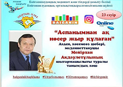 «І.Есенберлин –105» Аудандық балалар кітапханасы Қазақстанның халық жазушысы Ілияс Есенберлиннің өмірі мен шығармашылығын өскелең ұрпаққа таныту мақсатында «Заманын жырлаған жазушы» атты әдеби портрет кеші өткізілді. Кеште жазушы шығармашылығы кең таныстырылып, «Көшпенділер» трилогиясынан үзінділер тыңдалды. «Қарымды қаламгер» тақырыбында кітап көрмесі ұйымдастырылып, библиографиялық шолу жасалды