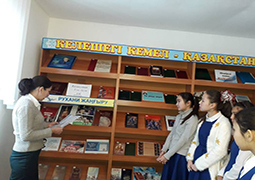 Аудандық орталық кітапхананвң оқу залында жасөпірімдермен «Әлемге танылған ұлы Абай» атты кең көлемде кітап көрмесі ұйымдастырылды. Көрмеге ақын Абайдың шығармалары (өлеңдері мен поэмалары, қара сөздері, аудармалары, әндері,даналық ойлары және т.б.) ұсынылды. Кітап көрмесінде ұсынылған басылымдармен бірге «Бір ел-Бір кітап» акцияға ұсынылған жазушы Мұхтар Әуезовтың «Абай жолы» роман-эпопеясында ақын Абай Құнанбайұлын терең танып білуге жасөспірімдерге ұсынылып, бүкілхалықтық оқуға шақырылды.