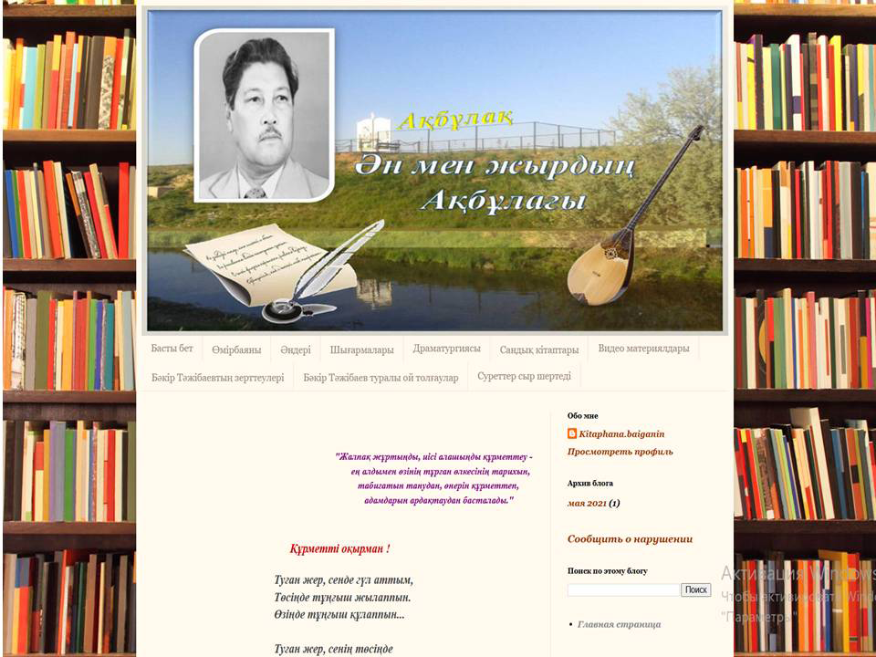 28 тамыз күні Белсенді ұзақ өмір сүру орталығында Байғанин аудандық ардагерлер пленумы өтті.Шара аясында Аудандық орталық кітапхана «Ерлік пен еңбек – ел мұрасы» атты жылжымалы кітап көрмесін ұйымдастырды.Көрмеге өңірімізден шыққан ақын-жазушылар мен ғалымдардың еңбектері қойылып, қатысушылар назарына ұсынылды. Жаңа кітаптар![]() Әлихан Жақсылық |