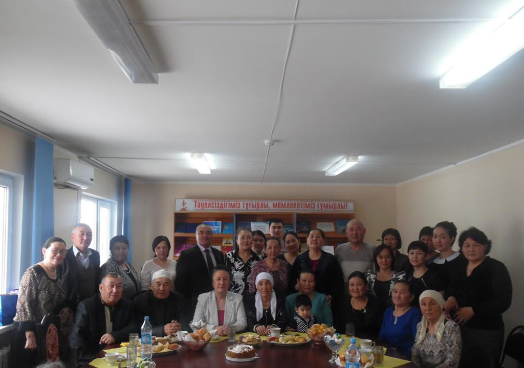 «Ақ орамал» акциясы аясында аудандық орталық кітапханада «Аналардың ақ тілегі – тыныштық» тақырыбында әжелер ансамблімен кездесу кеші. 2016. |