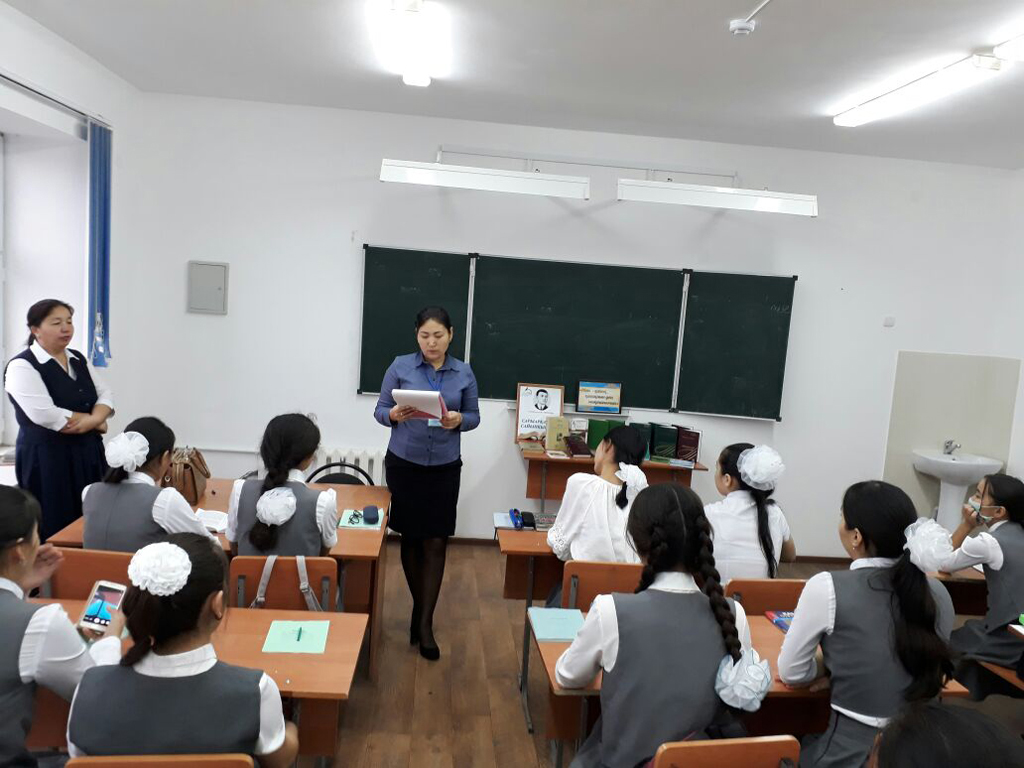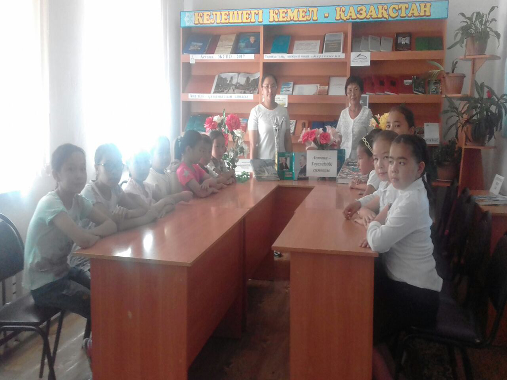 Астана күніне орай «Асқақтатқан алты Алаштың айбынын» тақырыбында мектеп жанынан ашылған лагерде демалуша балалармен ақпараттық сағат өткізілді. 2017. |