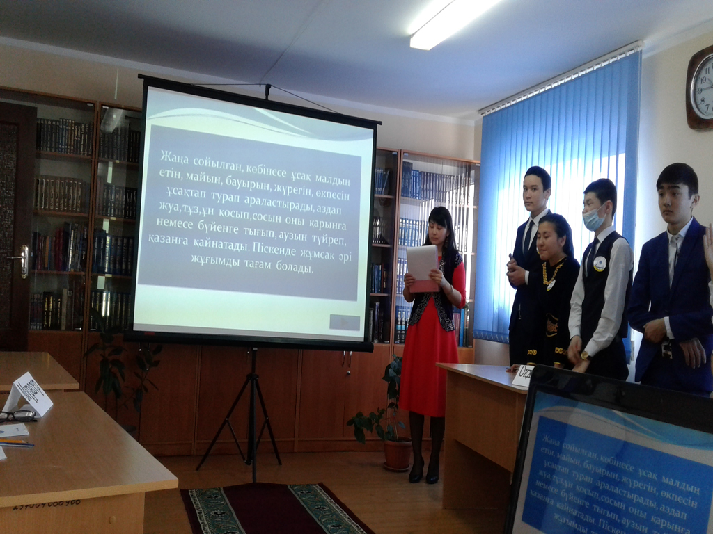 Байғанин аудандық техникалық колледжбен бірлесе отырып, «Ауылдан шыққан ғалымдар» тақырыбында танымдық сағат ұйымдастырды. 2016. |