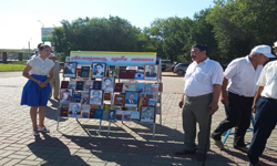 1-маусым – балаларды қорғау күніне орай «Кітапты ашып, әлемді таны» тақырыбында мүмкіндігі шектеулі оқырмандарға арнап жазғы алаңдағы кітап көрмесі. 2017. |
