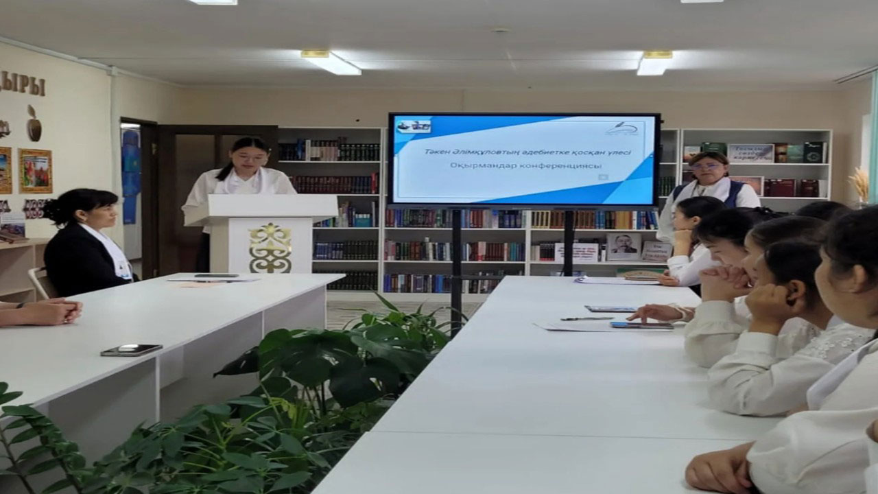 «Тәкен Әлімқұловтың әдебиетке қосқан үлесі» атты оқырмандар конференциясы 16 мамыр күні Аудандық орталық кітапханасында 2025 жылғы «Бір ел – бір кітап» республикалық акциясы аясында қазақ әдебиетінің көрнекті өкілі – Тәкен Әлімқұлов шығармашылығына арналған «Тәкен Әлімқұловтың әдебиетке қосқан үлесі» атты оқырмандар конференциясы ұйымдастырылды. Конференция барысында:Ұстаздармен, оқырмандар тарапынан әдеби баяндамалар ұсынылып, шығармаларға терең талдау жасалды, туындылардан әсерлі үзінділер оқылды.Шара жас ұрпақтың әдебиетке деген құрметін оятып, ұлттық әдеби мұраны танып-білуге деген ынтасын арттырды.
