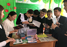 Аудандық орталық кітапхананвң оқу залында жасөпірімдермен «Әлемге танылған ұлы Абай» атты кең көлемде кітап көрмесі ұйымдастырылды. Көрмеге ақын Абайдың шығармалары (өлеңдері мен поэмалары, қара сөздері, аудармалары, әндері,даналық ойлары және т.б.) ұсынылды. Кітап көрмесінде ұсынылған басылымдармен бірге «Бір ел-Бір кітап» акцияға ұсынылған жазушы Мұхтар Әуезовтың «Абай жолы» роман-эпопеясында ақын Абай Құнанбайұлын терең танып білуге жасөспірімдерге ұсынылып, бүкілхалықтық оқуға шақырылды.
